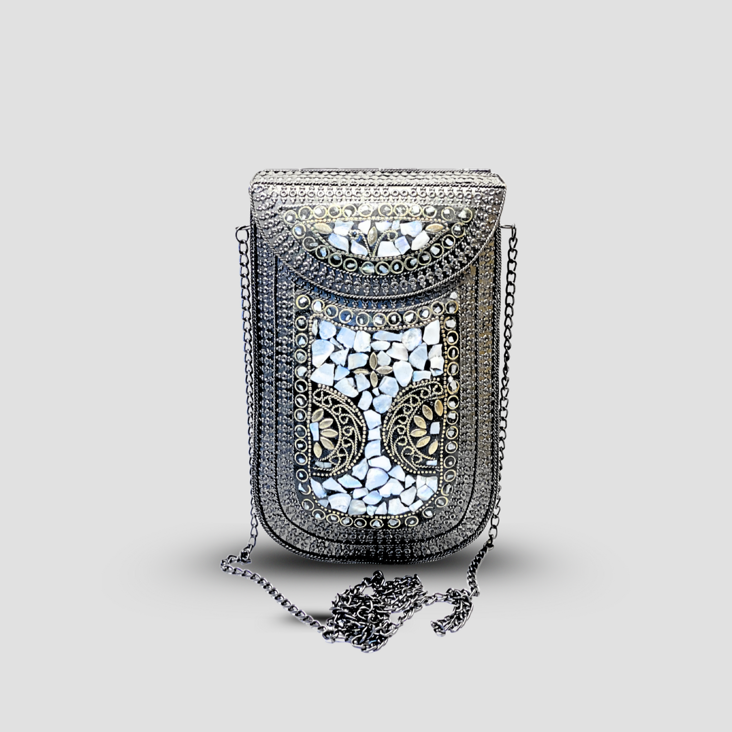 Noor Pearl Mini Metal Clutch-Gold-Silver